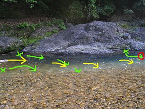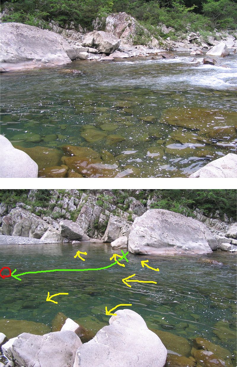 また、荒瀬、チャラ瀬、浅めの淵、淵、とどこでナチュラルドリフトなるものをやれば良いのか分かりません。